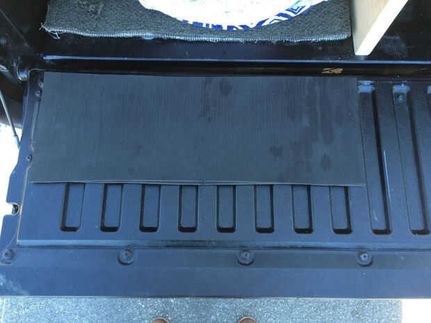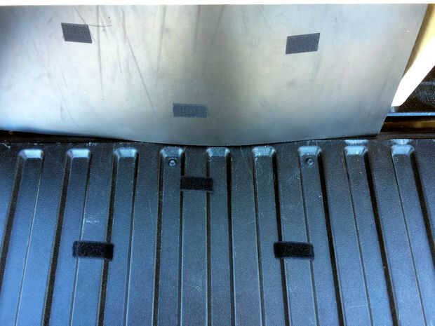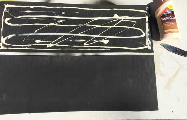 En el área de carga grande pongo relleno en el frente y atrás. He utilizado una estera de la yoga que llegué de una tienda de segunda mano, corte en rectángulos que cabrían bajo la cubierta superior. I doble capas para añadir un poco más acolchado, sólo utilicé pegamento de madera (probablemente no el mejor pegamento que está trabajando muy bien hasta ahora). He añadido algunos velcro en la parte posterior para poder eliminarlos si es necesario.