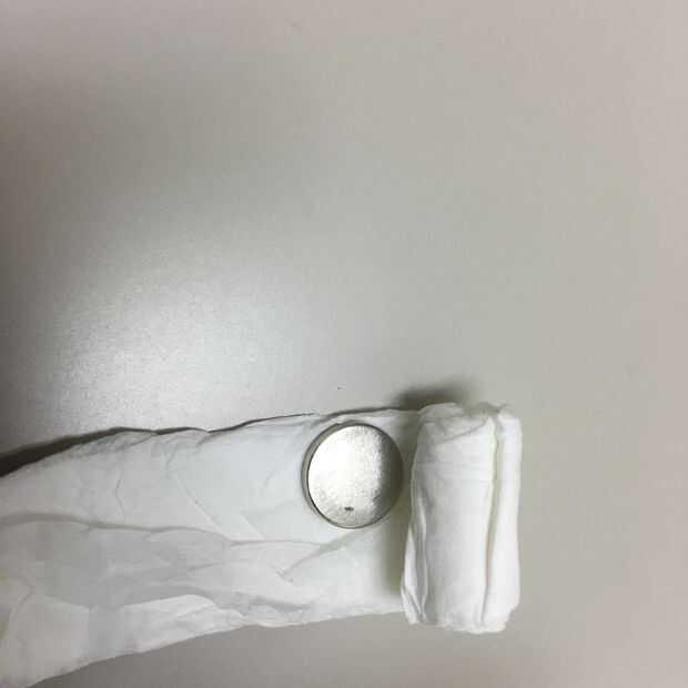 Cerca del imán del rodillo final en papel, luego péguela con cinta adhesiva.