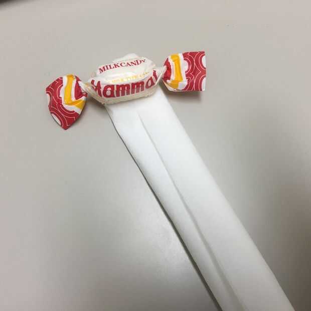 Doble papel a la anchura de caramelo, luego enrolle.