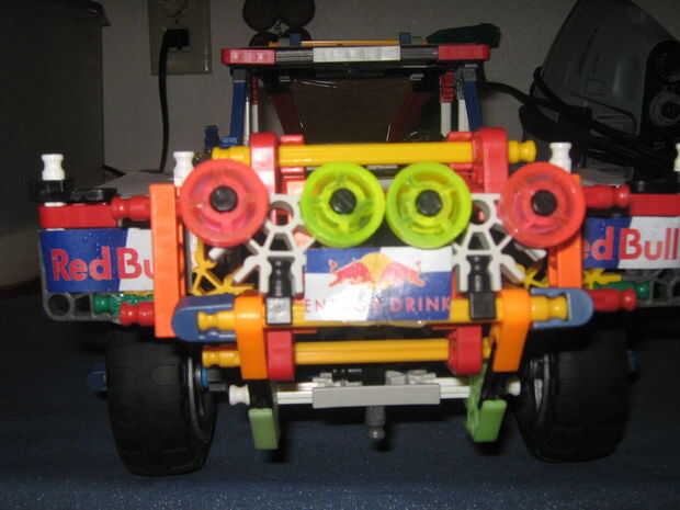 Este carro es mi intento de construcción de un carro RC Lego totalmente funcional. El objetivo era construir todo el funcionamiento mecánico de piezas de Lego con poca o ninguna modificación. El tren de la impulsión de este vehículo es una transmisió