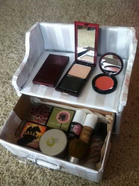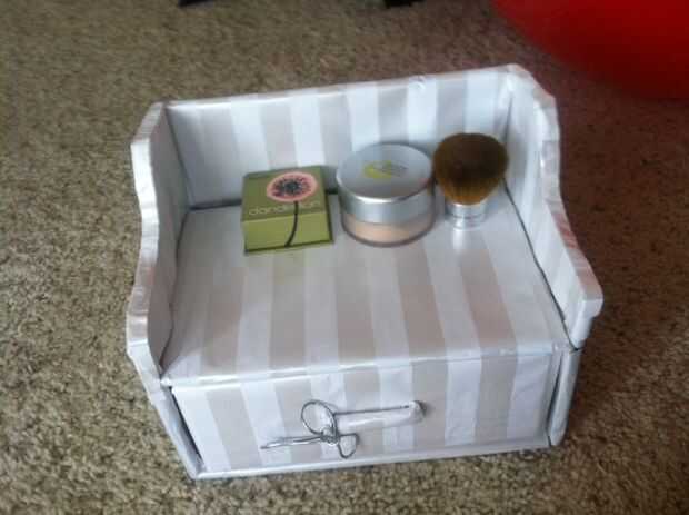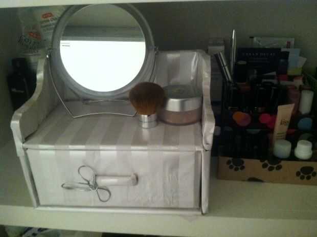 Paso 5: Colocar un espejo de vanidad en la meseta y organizar los cosméticos en el cajón.