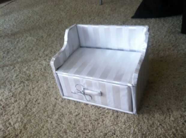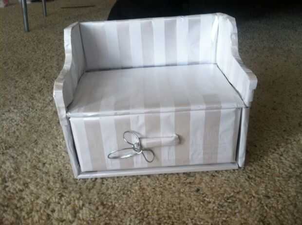 Paso 4: Hacer el soporte del cajón por el periódico. No te olvides de decorar con papel de embalaje.