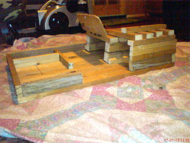 esta es mi casa de coche, me llevó alrededor de 5 días para la construcción, está hecho de madera, clavos y una bisagra. Es bastante grande, tiene dos garajes, uno es grande y tiene un ascensor para arriba la puerta con una bisagra, el otro al lado de ella es aproximadamente la mitad sin puerta. en la parte posterior cuenta con plazas y en la esquina tiene un espacio confind poner piezas de repuesto. Su tiene un borde alrededor de él y tiene una forma hacia fuera. Caben muchos coches allí. Es muy fácil de hacer así que si usted tiene alguna pregunta por favor envíeme un correo electrónico a tastur26 o simplemente comentario, gracias.