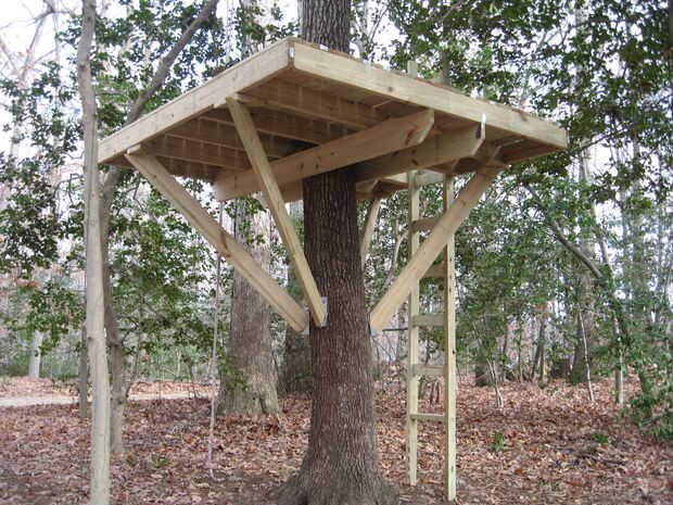 Finalmente, la casa del árbol tendrá pasamanos, un firepole, una tirolesa y la mitad se cubrirá con una estructura de tipo de la azotea.