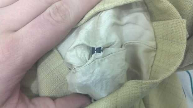 A continuación debemos preparar la chaqueta por lo que podemos poner en el Arduino. He encontrado varios bolsillos en el interior de la chaqueta, que proporciona un lugar para deslizar en el Arduino, la batería y los altavoces. Si no hay uno para tu chaqueta, recomendaría coser un bolsillo para sostener el Arduino. No, no ' saber coser bien. Ése es porqué usted debe conseguir una chaqueta que tiene bolsillos en el interior.
