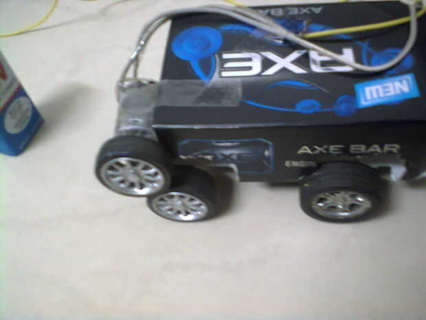 este es mi coche de juguete casero. Es muy simle tipo de coche. he hecho esto con algunos materiales de desecho, motores, cables, baterías y llantas... es un coche muy simple, usted también puede hacer esto. Esta no tan buena pero me estoy haciendo una muy buena y de gran alcance y que subirá pronto...