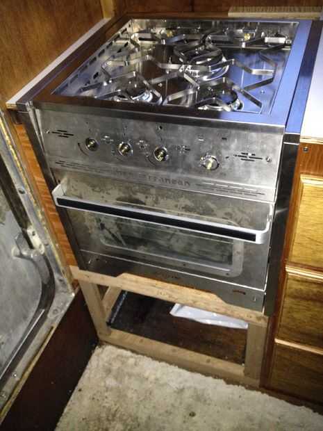 Aquí puedes ver la cocina en su posición final con acero Recortar piezas en frente y en la parte superior, además de las piezas del mostrador blanco a cada lado. Yo quería firmemente, pero no esperaba ser apretado! Me ignoran las instrucciones de instalación y mide la estufa directamente al esbozar todo previamente. No se recomienda, pero en este caso funcionó. No hay espacio suficiente para deslizar un trozo de papel entre la estufa y su ajuste. Medida, medida, medida!