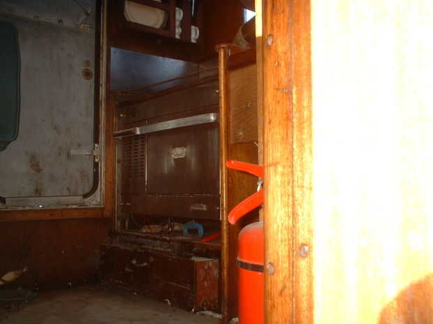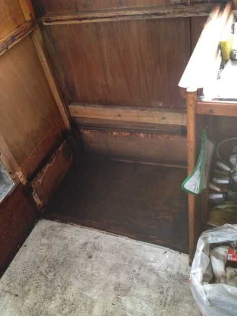 Aquí podemos ver un antes y un después de ver de la vieja cocina con apenas funcional cajón debajo y el agujero después de rasgar de madera volver a un punto razonable. Me refiero a "rasgando" la madera también. En el tiro después se puede ver que la capa más externa de la madera contrachapada viene ripeada las paredes donde tiras de madera antiguo fueron pegadas a ellos. Cada trozo de madera que se instalaron originalmente en este barco fue pegado y atornillado. Una cosa que nadie va a aprender en este tipo de proyecto es que algunos extra destrucción es inevitable. No te preocupes. Nada puede ser llenado nuevamente de alguna manera. No puede parecer lo mismo, pero casi nada en este mundo puede de alguna manera se pegan detrás.