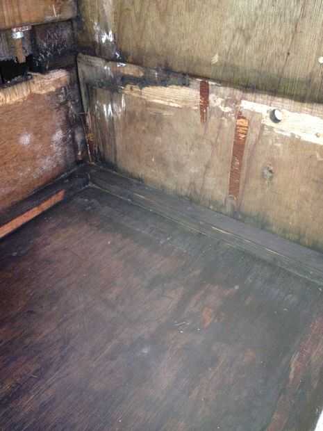 Mi madera restante era bastante sucio y había signos de fugas de agua salada. Estaba realmente preocupado por eso piso oscuro, ya que es una doble capa de madera contrachapada de caoba y las hojas extendidas bajo el área de la cabina entera. Tenía miedo que gasoil les había empapado también. Aquí tengo suerte. A pesar de la suciedad, etc., me las arreglé para lijar y limpiar todo atrás para encontrar buena madera por todas partes. Esto demuestra exactamente por qué ciertas maderas se utilizan en aplicaciones marinas. Este barco ha sido congelado en invierno, empapado en varios percances (sí, en el interior!) y generalmente abusado y descuidados durante años. Si se pasa por alto fuentes de salvamento de alta calidad, Nunca subestimes a un viejo barco.