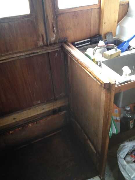 sí, repetí la misma imagen además de otro punto de vista de mi punto de partida, pero esta vez concentrado en las tiras de madera en la parte superior de mi proyecto. Para mi encimera de quedar completamente plano y combinar la cocina, los tres lados del espacio — es decir, las dos tiras de madera superiores y la parte superior de ese panel de la derecha — izquierda después de demolición deben estar en plano con los demás. La parte superior de ese panel vertical a la derecha tenía una gran pieza de adorno que ha estafado. La superior izquierda traseras tiras fueron lo suficientemente cercanas como para considerar que en el mismo plano y pude pulir la parte superior de ese panel a la derecha del agujero. Todo esto fue alineada mediante el establecimiento de una gran escuadra de carpintero y un borde recto de 4 pies en infinitas configuraciones y echando un vistazo hasta que me convencí de que estaba jodido no importa lo que hice, por lo que también podría llamar buena.