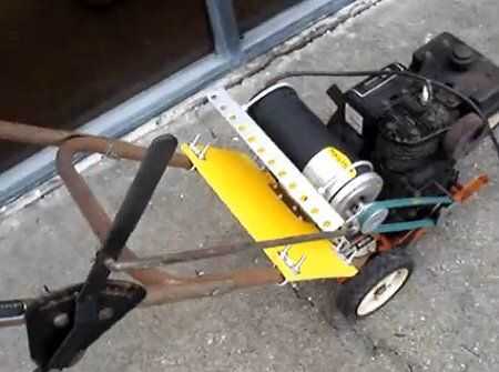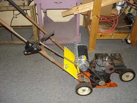 La tercera foto es perspectiva de un operador mirando hacia abajo en el generador. Para operar, primero me muevo la palanca hacia adelante un par de muescas para tomar la tensión de la correa. Luego que arranque el motor. Una vez es para arriba y bueno, que puedo tirar de la palanca de nuevo y participar el generador. ¡ Simple!