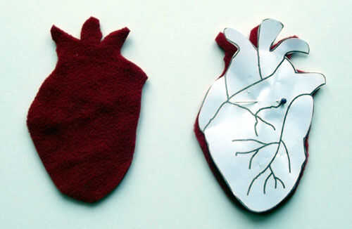 picar el corazón, et voila! Una pieza frontal y la parte posterior. Dejar de lado la parte de atrás por ahora y volver a prender la plantilla al frente en el lado derecho de la tela