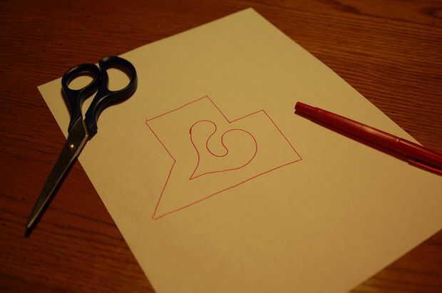 Extraer exactamente cómo desea su corazón para ver como. Luego corte el patrón hacia fuera, asegurándose que hay por lo menos 2 cm del borde.