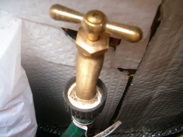 Una vez que las mangueras se unen, a continuación, un extremo del cobre de la bobina hacia abajo un poco y un final para arriba. El extremo hacia abajo es la manguera de agua fría, la superior es la manguera de agua caliente.