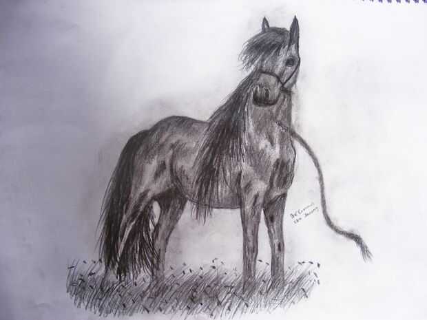 cómo dibujar una cabeza de caballo Zombie. Dibujo de una cabeza de caballo Zombie con un lápiz 2B. El proceso en la elaboración de este es correcto en el dibujo y la etapa de realización del concepto. Utilizando una imagen de referencia genérica de u