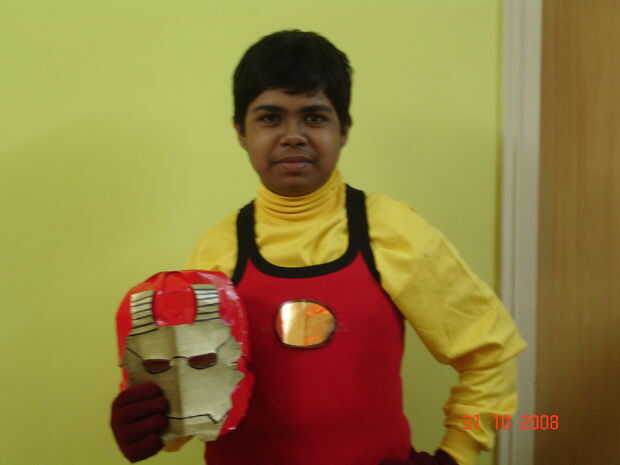 Este disfraz de Halloween es Jefe Maestro, Spartan 117, el héroe del juego Xbox 360 Halo 3. Tomó un tiempo (mi papá me ayudó un poco), pero creo que salió gran. Consiguió mucha atención en el carnaval de Halloween de la escuela. Estoy en sexto grado