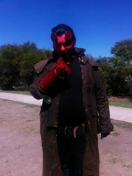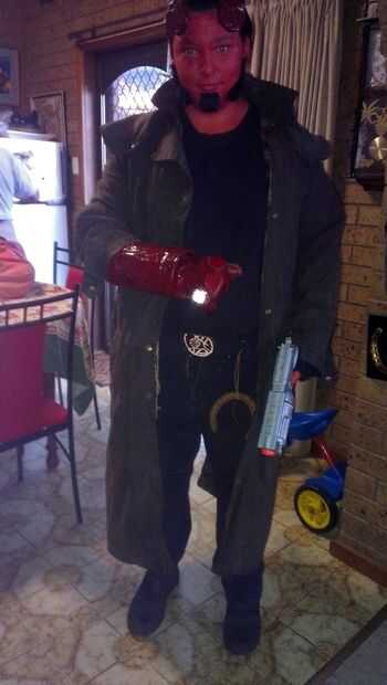 Es que estoy en el año 12 pensé que pondría algún esfuerzo en lo que iba a llevar ese día. Estuve en Wolverton House que es la casa roja de la escuela por lo que parecía adecuado para el día como Hellboy y hacer el mejor disfraz que posible podía con poco o ningún presupuesto.