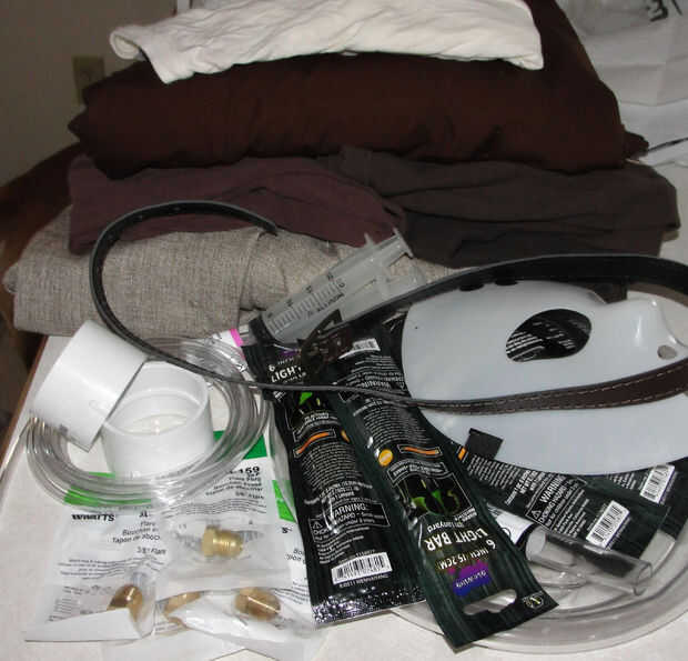 * Encontrar cualquier tipo de colores marrón y tela para hacer parches, preferiblemente en muy grandes ~ encontré chicas leggins unos tamaños demasiado grandes para mi 7 años antigüedad, este traje llamados de pantalones holgados. Una camisa marrón de niñas talla 10-12. Los chicos de brown camiseta 10-12. Camisa de manga larga pequeñas de las señoras en el color más claro que pude encontrar que era cerca del color de la piel. Las señoras traje de chaqueta en una arpillera color. Cinturón marrón, nada extravagante.