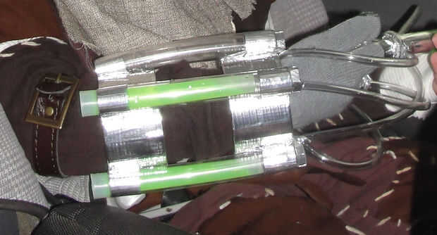 Corte el tubo de 1 pulgada a la longitud, (Glow stick y final tapa) laminada tubos igualmente alrededor de la PVC (esto era un dolor, nada quería pegar! Pegamento del zapato y la cinta hicieron el truco)