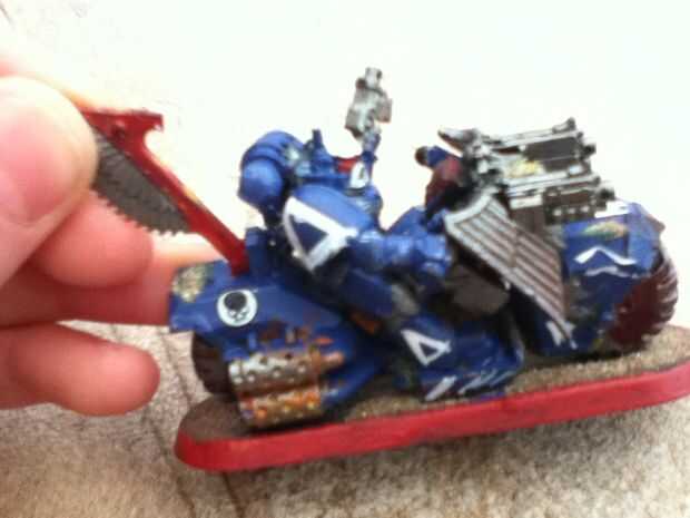 mi amigo es pesadamente en cultura y tradición de Warhammer 40K. Le gusta las cosas afiladas. Le gusta los Ángeles de la sangre.Todo esto dio lugar a una modificación de 5 horas loca de este machete. Encantó.No sé qué 40k es?- http://en.wikipedia.org
