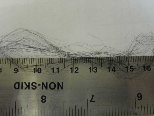 Las dos partes principales del electroscopio son los hilos y la bola - el péndulo - y una tira de cobre. La operación exitosa del electroscopio se debe principalmente al péndulo está bastante largo, unos 75 cm y tener una masa pequeña. La masa de la bola es pequeña debido a la baja densidad del material de poliestireno y la pintura de grafito. Los hilos de rosca (monofilamentos) también tienen una masa muy pequeña por ser extermely fina, cerca de 30 micrones o tres centésimas de milímetro de espesor (medida con un micrómetro). Eso es cerca de 1/20 de milímetro de espesor. Había cortada estos hilos de algún material sintético que se desgaste hace un tiempo, tal vez es nylon (cualquiera en la experimentación y la construcción tienden a recoger una gran cantidad de materiales especiales, afortunadamente me di cuenta de que los hilos eran muy finos y largos y decidieron mantenerlo en lugar de tirarla - simplemente no venga y llorar por mi cuando tu madre te da un escondite). También sospecho que magos usan estos hilos "invisiblemente" suspender objetos como cartas de juego.