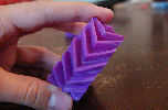 He usado PLA púrpura plástica en mi high school Makerbot 2 5ª generación impresora y tomaron cerca de 7 horas para imprimir. Realmente no sé qué resolución se realiza, ya que los bibliotecarios manejar todas las cosas de gcode. La altura de la capa parece realmente pequeña, aunque y que representa el tiempo largo de impresión. Las cosas son realmente ligeras, por lo que supongo que el relleno estaba en alrededor del 30%, panales.