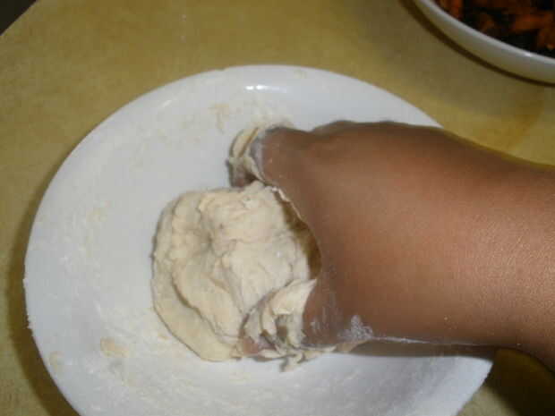 1. Mezclar la harina, sal, aceite y sal para hacer una masa suave (Agregar más agua si es necesario).