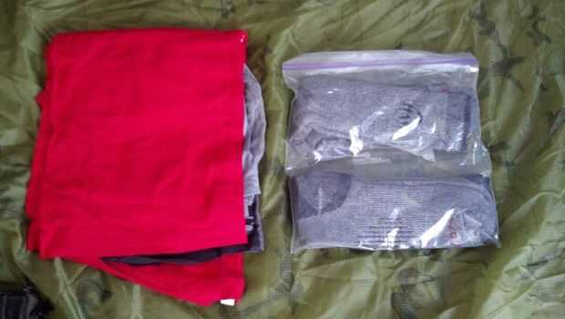 Foto siguiente es 2 juegos de calcetines de lana 100% en una Ziploc. Los pies son importantes. Cuidar de ellos. Lana de calcetines > calcetines de algodón. También hay ropa interior de repuesto 2, un trabajo gris hacia fuera la tapa del tanque (en caso de que se calienta) y una roja camisa de algodón (se puede utilizar para señalización, haciendo el char paño, mezcla cuando rojo permite...). Estos también se encuentran en un Ziploc, pero no en la foto.