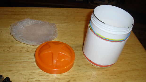 de pescado envase de alimento, 12' de cinta pato y unas bandas de goma. papel de cera es hacer un sello mejor...