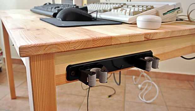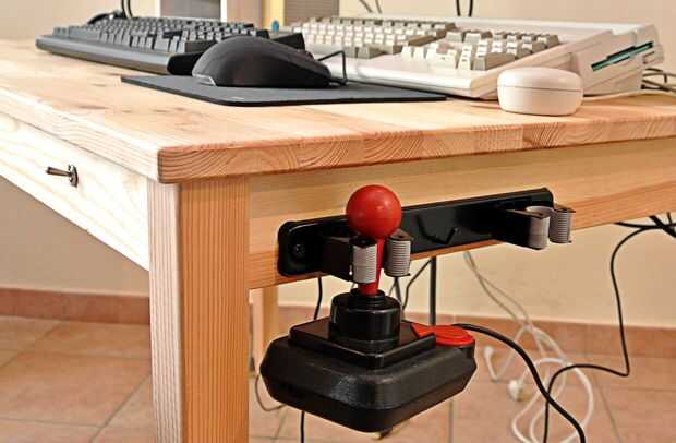 Coloqué un sostenedor de cepillo en el lado derecho del escritorio. Funciona tan bien como soporte de joystick.