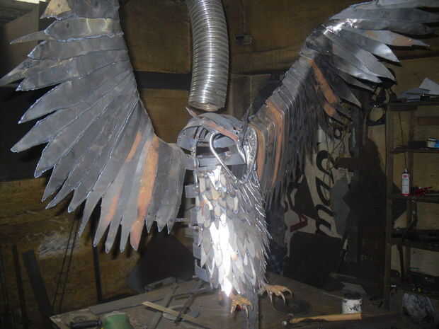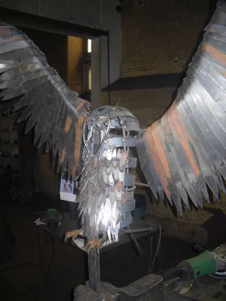 PARA FORMAR EL MARCO PARA LAS ALAS OTRA VEZ UTILICÉ BARRA REDONDA SOLDADA CON AUTÓGENA AL MARCO EN LA PARTE POSTERIOR DE LAS AVES, MANTENER ESTA BARRA SIEMPRE QUE ESTO LE PERMITE APÁRTESE Y OBTENER LAS PROPORCIONES DE LA DERECHA. APROXIMADAMENTE 100MM AGREGAR OTRO DOBLEZ HASTA SATISFACER EL UNO SUPERIOR. SE puede forma estas alas sin embargo te gusta es decir vuelo, tomando de aterrizaje lo que sea. OH Y LO PAGA AHORA PARA OBTENER UNA IMAGEN DE UN BUHO EN VUELO SÓLO PARA VER CÓMO ALLÍ ALAS ESTÁ ESTRUCTURADA, QUE REALMENTE GOOGLE UN ESQUELETO DE BUHO QUE REALMENTE AYUDA A DAR FORMA LAS ALAS