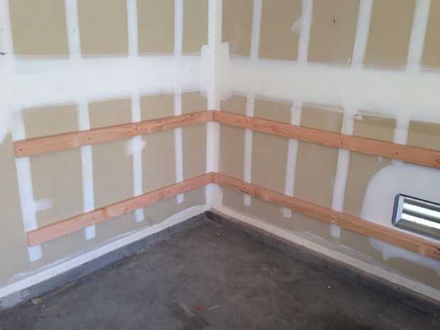 Primero tuve que eliminar una cantidad suficiente de espacio en el garaje. A continuación montara un par 2 X 4 en las paredes como una guía para mantener una superficie de trabajo nivel terminado. El suelo de mi garaje pistas hacia la puerta del garaje para nivelar todo el suelo no habría funcionado.