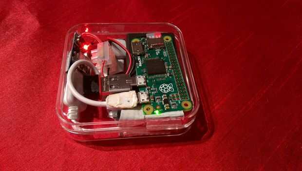 Encontrar una bonita caja para colocar todo en forma segura. Como se puede ver, mina es menor en longitud que una tarjeta de crédito. Si utiliza una batería de LiPo (tenga cuidado con él!), necesita mucho menos espacio.