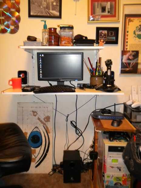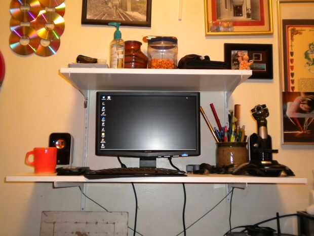 Estos estantes vereis generalmente - Monitor, teclado y ratón para escribir instructables y encontrando inspiración en la www o simplemente divertirse. También trabaja para una estación de soldadura y Banco de trabajo.