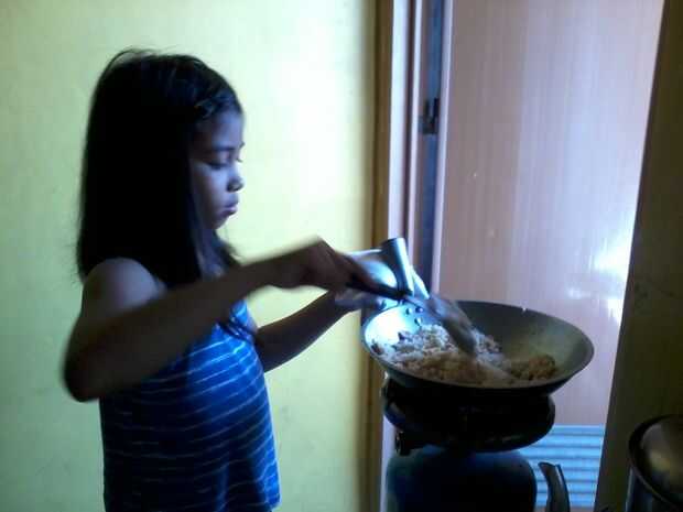 fácil de preparar Chao Pan arroz para el desayuno. Todo lo que necesitas es 2 cucharadas de cocina el aceite, la cebolla, el ajo, a la izquierda sobre el arroz, jamón frito picado, frito hotdog picado (si lo desea), huevo, salsa de ostras, sal y aliños a gusto. Primero, acitronar cebolla y ajo. Luego armar el arroz, jamón frito, salchichas fritas y revuelva durante 5 minutos. Poner el huevo y revuelva otra vez a continuación añadir la salsa de ostras, sal y condimentos al gusto.