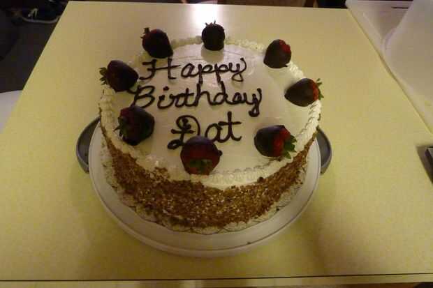 Capas de tarta de almendra con crema de frambuesa y mermelada con Frosting batida y fresas Chocolate sumergido