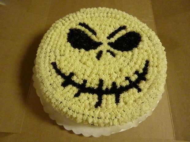 Pastel de Fudge de chocolate decorados con buttercream frosting como Jack Skellington de "Pesadilla antes de Navidad"