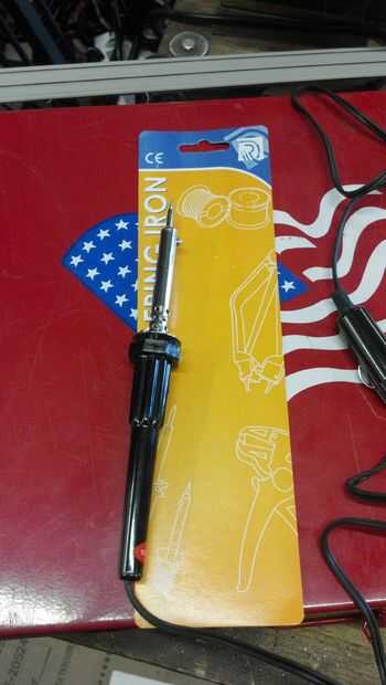 No hay mucho que decir aquí, encontré un soldador de 30 Watts DC 12V en Amazon por unos $10 después del envío, no esperaba mucho, pero realmente funciona ok, no mucho pero vale la pena $10, con una fuente de voltaje variable podría ser mejor, pero no lo necesito aún, sólo lo estoy usando para algunos empalmes en el camino de la soldadura , y funciona bien para eso. Cortar la cuerda para añadir un interruptor para hacer la punta a tierra para soldadura electrónica delicada, pero que no era tan grande un acuerdo para hacer, y si desea instrucciones puedo hacerlos con las peticiones.