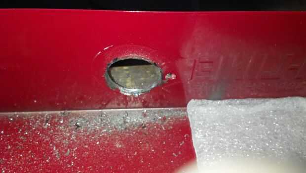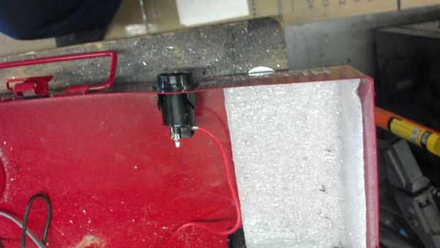 Perfore el orificio de tamaño adecuado para un encendedor de cigarrillos. Para mi que era un agujero de 1", he utilizado un taladro de unibit todos / Bit de paso dependiendo de quien se le pregunte. Luego utilicé una lijadora de dotco 90 grados que elimine las rebabas del interior del agujero. Entonces coloqué el zócalo en lugar y estoy listo para lo del alambre. Taladro un agujero de la lámpara y por interruptor, colocarlos en.