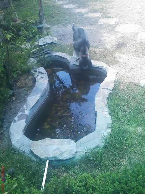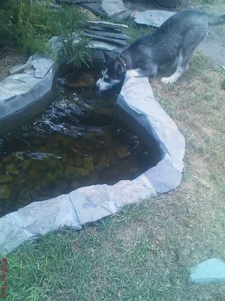 A mi perro le encanta tomar agua del estanque