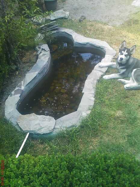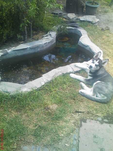 En el estanque vive 2 peces Koi y cerca de 30 peces pequeños que no sé cual tipo son y un Pleco para limpiar a un poco el agua.