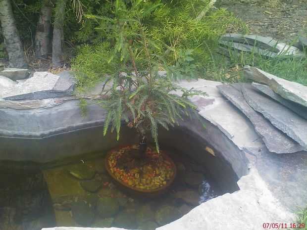 Que tal este es mi primer intructable, y quiero compartir mi estanque con la comunidad de instructables, esta hecho de concreto y laja, algunas piedras de río para darle a los peces un lugar donde esconderse y algunas plantas Madrid, tambien tiene un bonsai "Taxodium mucronatum" mejor conocido como sabino o ahuehuete, este árbol requiere mucha agua y en el estanque se alimenta directamente de ella y de los dechos de los peces haciendo un pequeño ecosistema.
