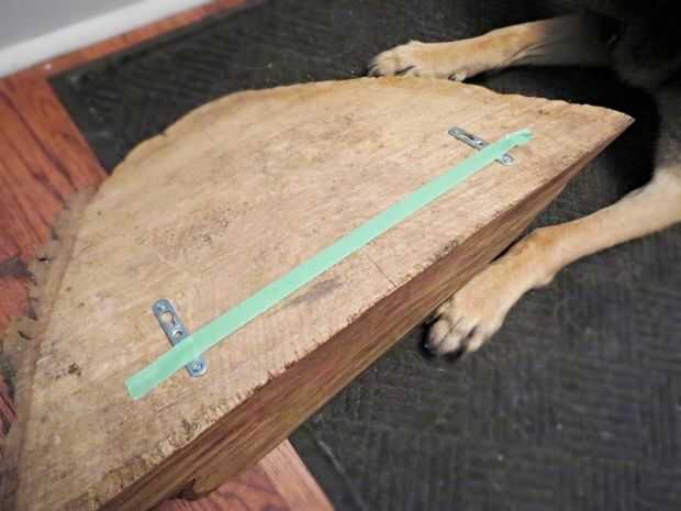 Estirar un trozo de cinta de pintor sobre los agujeros de los soportes, hágale un agujero pequeño a través de siempre tan cuidadosamente, pegue la cinta a la pared y nivel con la ayuda de un nivel de burbuja. Marca a través de los orificios con un lápiz y tienes las ubicaciones de los tornillos en la pared.