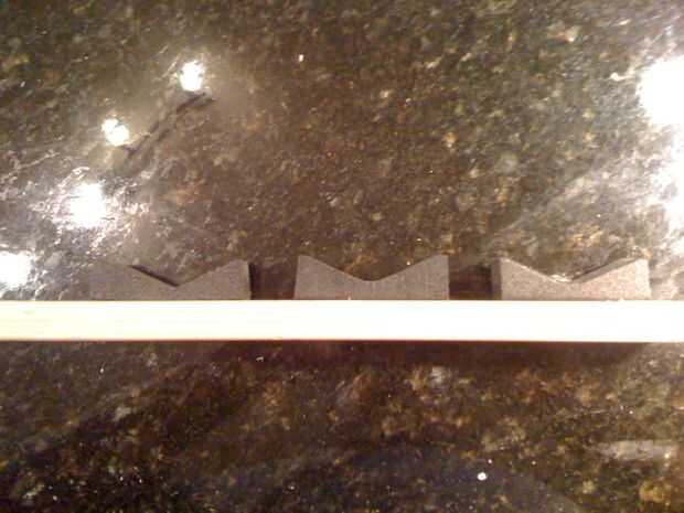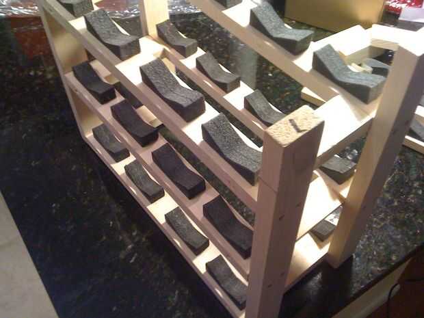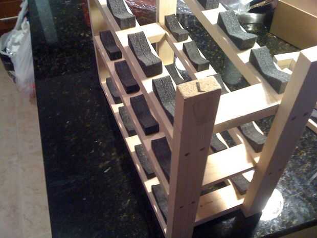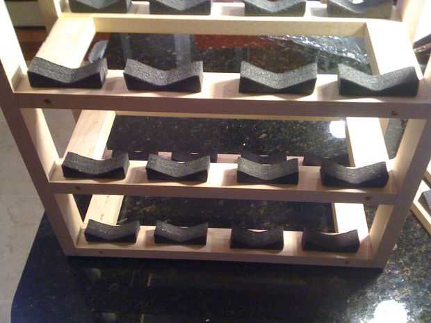 Lo hice, porque las restricciones de espacio, fue dejar 1/2" espacio en ambos extremos y 1" entre almohadillas de espuma. Porque tengo 4 en cada estante de termino, en el centro con espacio de 1 1/2", lo que es bueno porque son botellas de al no hacer tanto :)