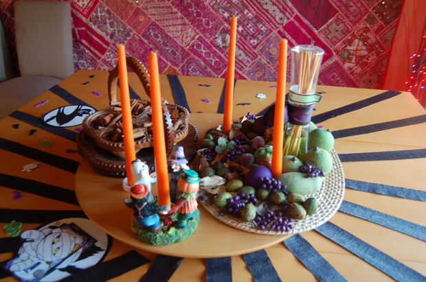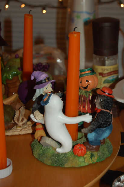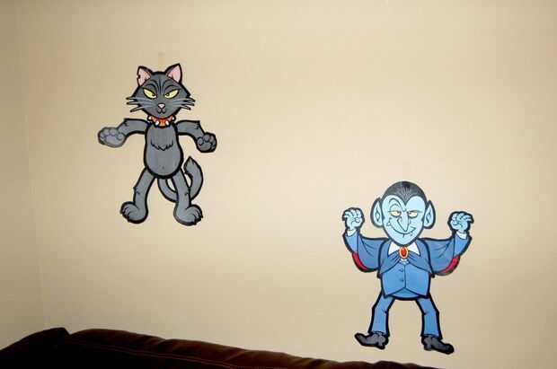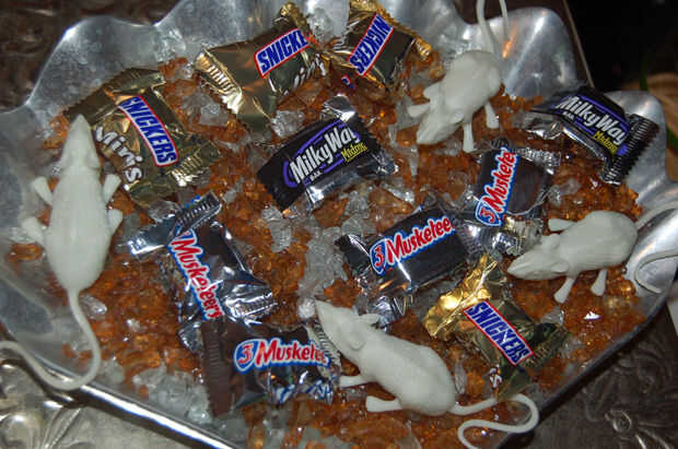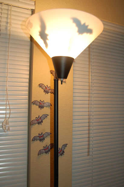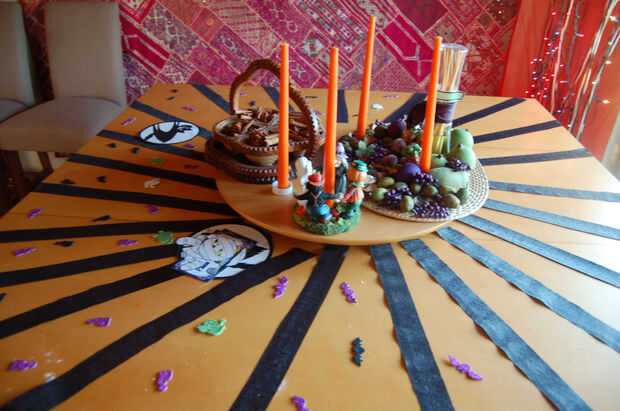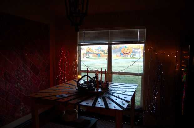 una visita al almacén del dólar y gastar $10 en papel crepé, cartón suave y globos negros. Descargué algunas plantillas gratis en línea e imprimirlos. Mi hija recorta todas las figuras seguidas pegándolas en velas y placas de la tarjeta. Yo al horno a unos cupcakes y profundo bebida roja para dar un efecto de sangre. Ponemos algo de hielo seco en calabaza para crear un efecto de miedo.
