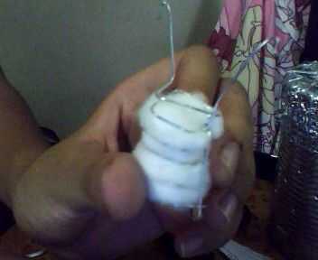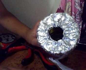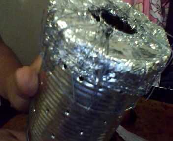 chimenea de la estufa para ser exactos. Pero entonces hubo un problema con la parte superior de la lata. Allí fue supuesto para ser un agujero estrecho en la parte superior, pero no había ni uno. El abrelatas fue roto por lo que era un corte áspero de la tapa por lo que no cabe. Tuve que improvisar con alambre galvanizado y aluminio. También hice unos 36 agujeros para el aire fluya a través. Hay un soporte de mecha suspendida para que puedo sacarlo y limpiarlo. Tengo que limpiar por el residuo que queda cuando se quema el combustible. El combustible es alcohol etílico, solución al 70%. No queman limpio por lo que deja residuos. Las mechas son bolas de algodón. También terminan quemando y dejando residuos. De todos modos, el titular de la mecha suspendida puede sostener bolas de algodón 2 1/2, así que puede contener una buena cantidad de combustible. Coloqué el lado brillante del papel hacia fuera con el fin de reflejar el resto del calor en una dirección general. Es algo de una linterna infrarroja de las clases. Pruebas preliminares sugieren que esta estufa estará caliente cuando se enciende. Todo depende de la estufa y el combustible.