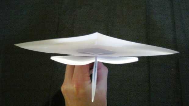 Introducción: el buitre es un avión de papel de larga distancia.  Aprender a controlarla, estabilizadores de las alas la curva más o menos..., le gustará cómo vuela. Tirar ligeramente de la puerta y vómito en 30 40 /-50 grados tan fuertes como puedas