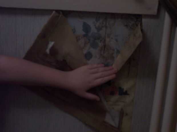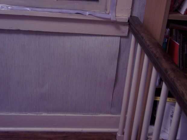 Así, mi mamá es subiendo las escaleras hoy y notó que el papel de la pared en el pasillo es caerse. ella comprueba dobla hacia fuera, sobre, y había este fondo de pantalla muy agradable de gente cortar madera, una casa de la escuela, los niños y algunas otras cosas. Ella figuras era a partir de mediados de los años sesenta. entonces, ella dobla esa capa encima, y hay otra capa de flor impresa papel pintado que dice mi grandmma es probablemente de los años cuarenta.