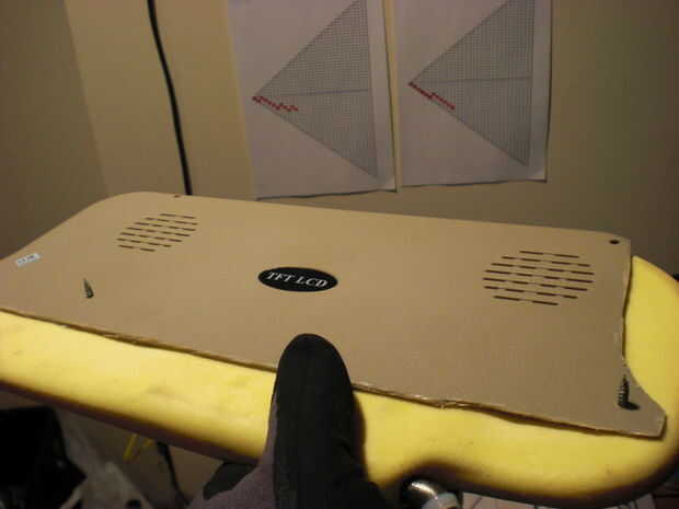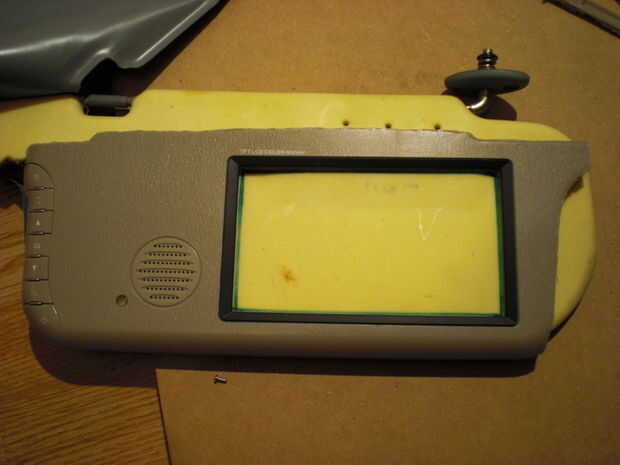 Mis primeros pensamientos fueron poner solo la pantalla en la espuma, pero luego decidí usar la cubierta de la visera de sol plástico para dar más sensación de estabilidad/protección/sólido. Así que corté los bordes de la tapa de plástico y he podido cerrar la visera foamy en el plástico de uno (ver foto).