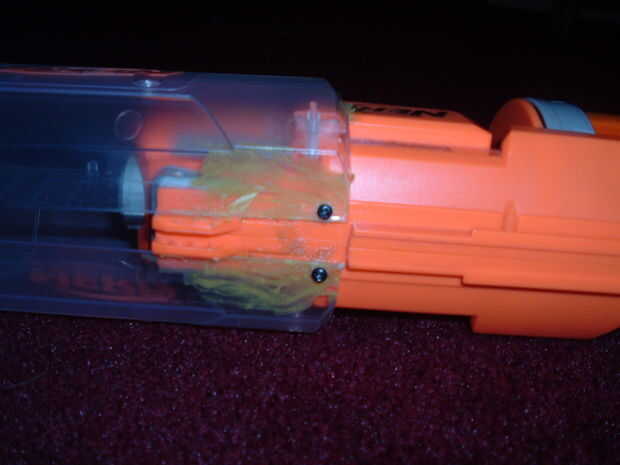 he pensado en hacer una acción para FuryFire en fiesta de cumpleaños de mi amigo. Dos meses más tarde recibí el Deploy y entonces se rompió, así que lo desmonté y desde que tengo el balance de la implementación. Intenté pegar en, pero eso no funciona. Entonces comencé el camino arriesgado de ponérselo, perforar y poner tornillos en él. Me sentí tonto haciendo eso, pero me funcionó hacia fuera. Así que meses más tarde recibí el barril Break IX-2 (sólo se vende en Toys "R" nosotros) y viene con esa cosa magizine encima que usted fije. Entonces yo poner en el FuryFire con el caldo y que se parece a una escopeta (o una "escopeta"). Se podría pensar que esto es raro, este es mi primaria en la mayoría de las batallas NERF. Sé, puedo usar un rifle de francotirador, ametralladora o una semiautomática blaster NERF, pero este blaster funciona mejor para mí. Como se puede ver en las fotos, me había atornillado en la parte superior y pegar pegamento en los bordes para garantizar mejor la acción. por favor lea lo siguiente: Sabe lo que su hacer. Espero que este levanta sus esperanzas o darte una idea para hacer un instructable. :)